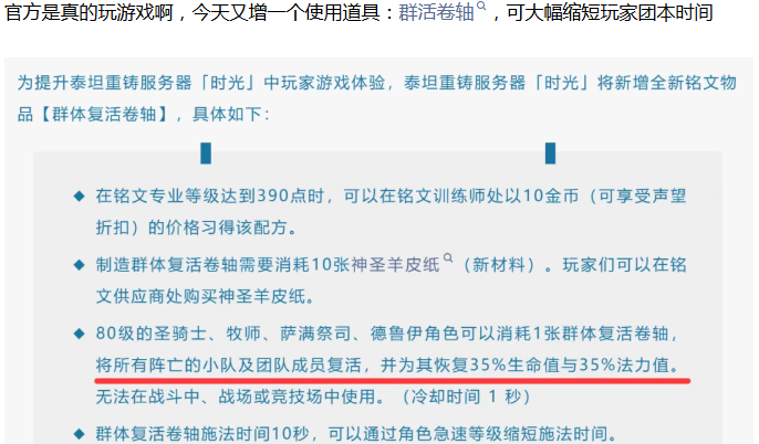 群活卷轴终于来了,这样在团灭后就不用等大量的时间救人,有些人还救不到只能跑尸,有了这个卷轴,每把团灭后的时间成本大幅降低!