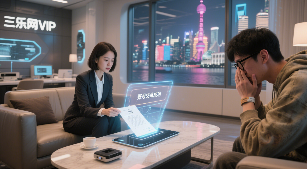 三乐网 VIP 接待室的智能茶几上划开全息合同,窗外黄浦江的霓虹正透过落地窗将 "账号交易成功" 的提示映成流动的光斑。对面沙发上,穿旧卫衣的林深突然捂住脸,指缝间漏出的哽咽声让整个房间的空气都震颤起来。