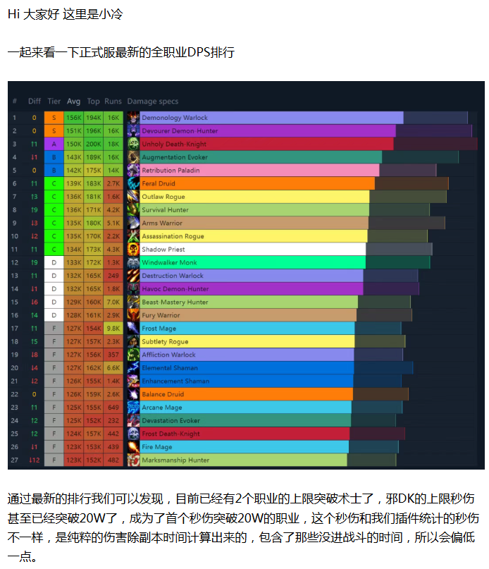 【魔兽世界】正式服首个秒伤突破20W的职业出现!术士已被多个职业超越