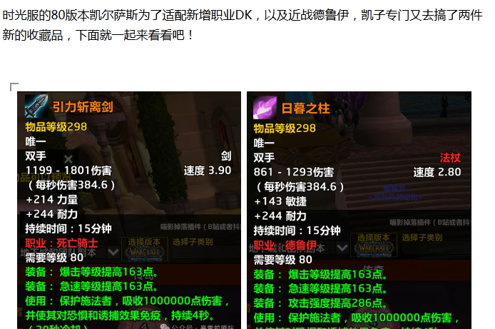 【魔兽世界】时光服新增两把橙色武器,专门为了适配这两个专精