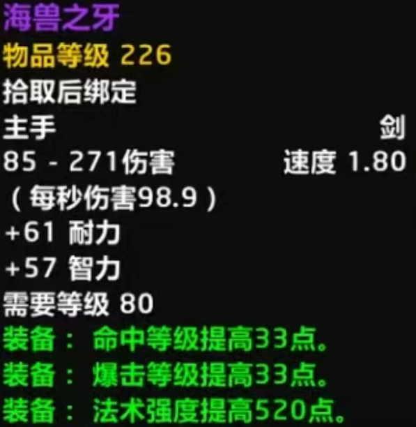 时光服P2开放在即,除了大家期待的风剑之外还有一些很出色的紫装,那就是毒蛇神殿老三掉落的海兽之牙,这是法系冲榜必备的神器,其中命中暴击属性非常适合法师鸟德,不过售价也是非常高,前期基本保持在2到8万G,可以直接买4把橙斧橙项链了。