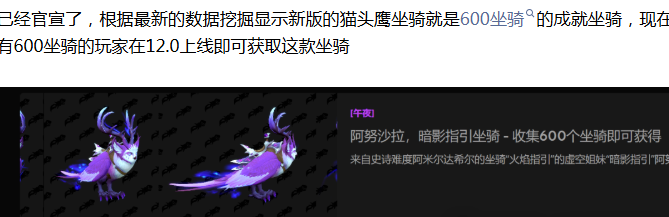【魔兽世界】官宣!新版猫头鹰坐骑的获取方式来了,这些玩家上线即可获取
