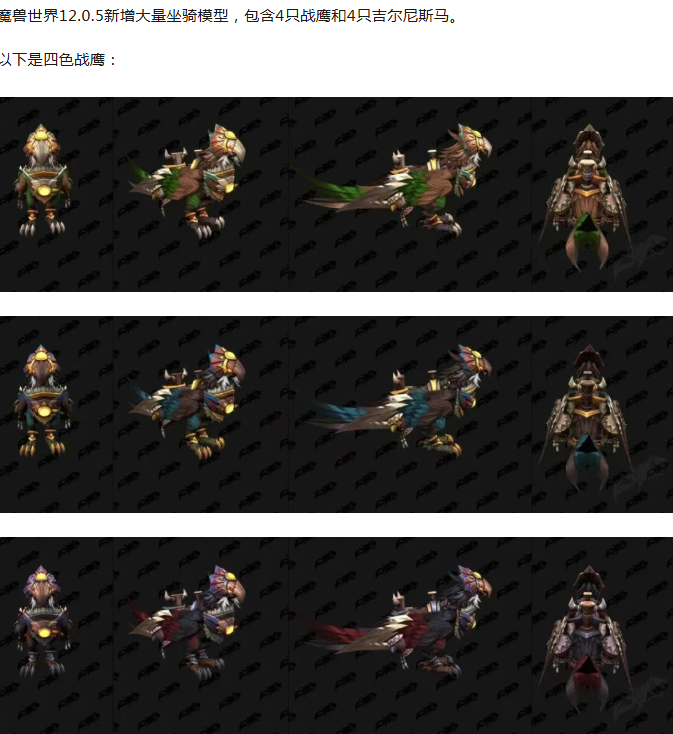 魔兽世界新增大量坐骑,4色战鹰和4色吉尔尼斯马