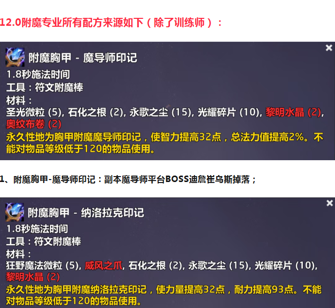 12.0至暗之夜附魔专业全图纸来源!