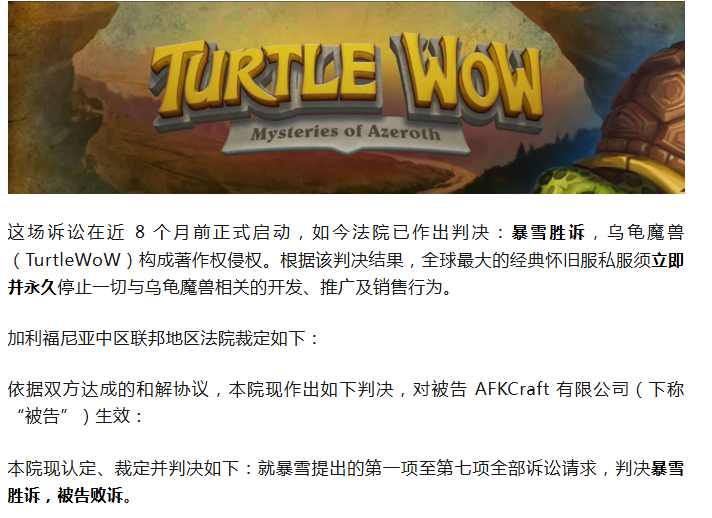 魔兽:暴雪胜诉!私服彻底判死!乌龟服被禁用所有魔兽代码!