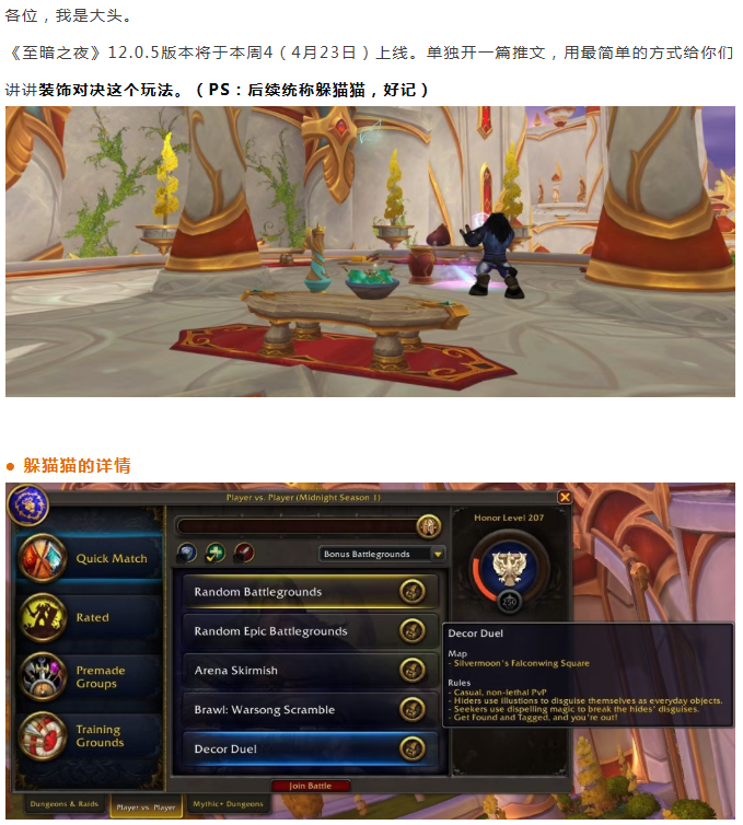 魔兽世界:12.0.5版本新玩法“躲猫猫”详解,心眼子博弈,输赢都有奖励