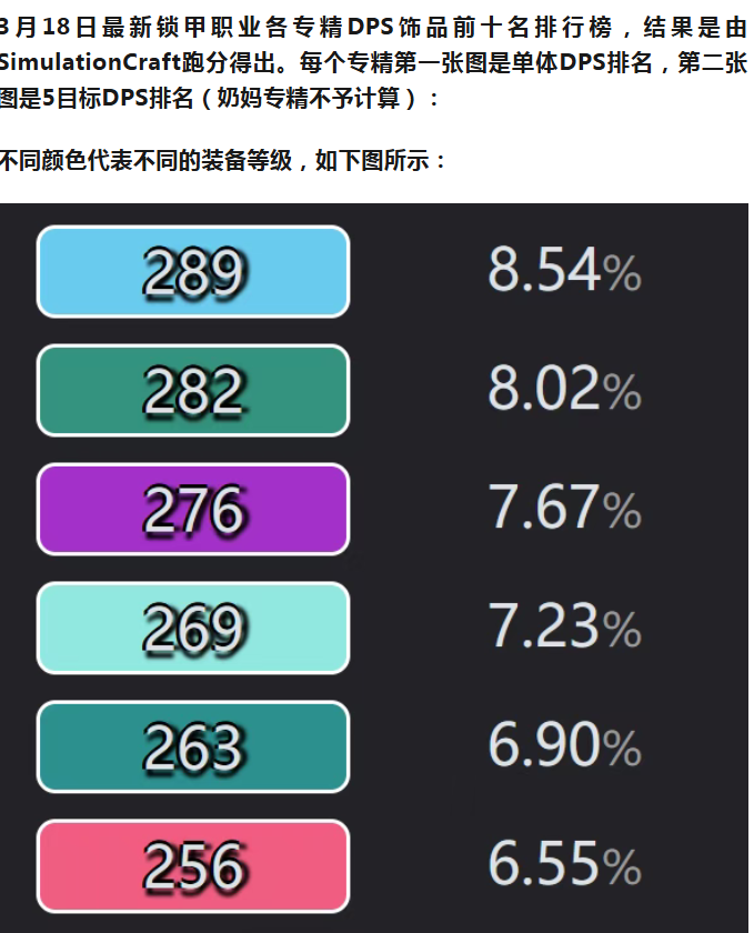 3月18日全职业专精DPS饰品Top10排行榜-锁甲篇