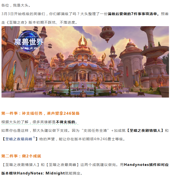魔兽世界:大头整理,《至暗之夜》刚满级后别迷茫,这7件事做完版本初期不踩坑、不落进度