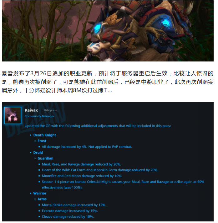 魔兽:3月26日追加职业调整!冰DK获加强,熊德再次削弱!