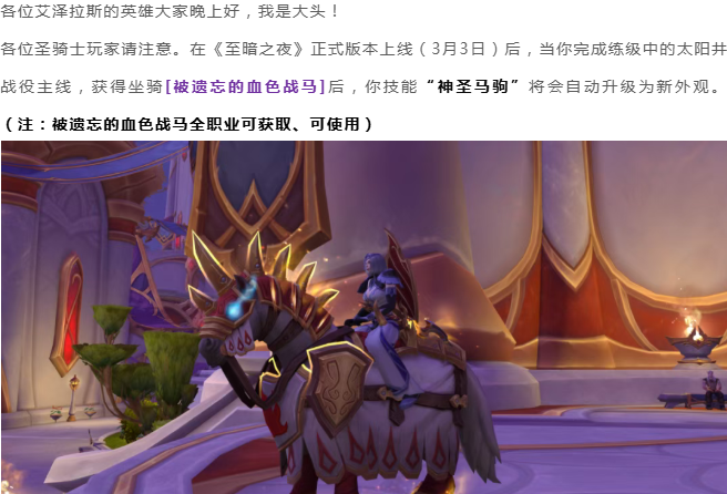 魔兽世界:至暗之夜中,圣骑士一个技能迎来巨大BUFF,“影帝”更帅了!