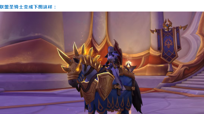 替换后的“神圣马驹”光影效果、粒子效果明显,尤其是在在周围颜色较暗的情况下更明显,各位圣骑士玩家有福了。