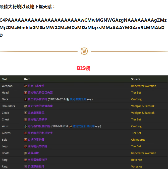 12.0射击猎全解析丨天赋、BIS装、附魔、属性优先级、输出循环!