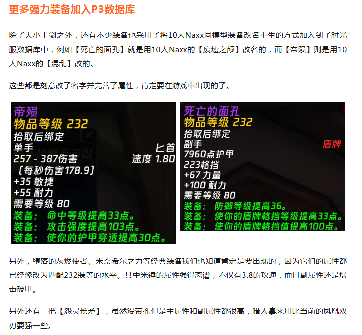 魔兽时光服P3数据挖掘:大小王剑借尸还魂,还有大量强力武器额外加入!