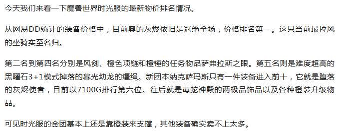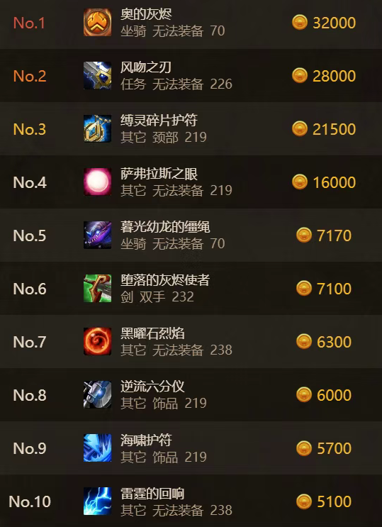 时光服最新装备价格排行!Naxx仅有一件上榜