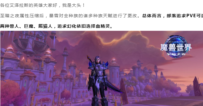魔兽世界:至暗之夜部落种族天赋变化前瞻,两种兽人、巨魔、熊猫人PVE不错,幻化依旧血精灵