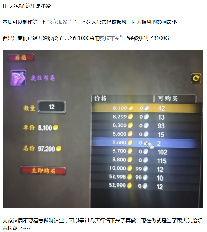 【魔兽世界】注意!正式服本周千万别做制造业装备,不要当了冤大头