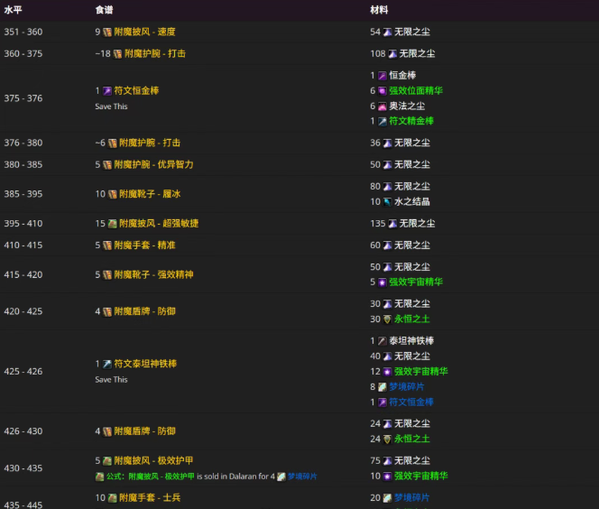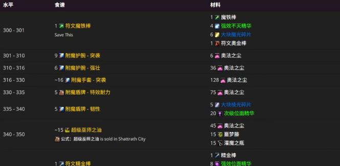 时光服附魔1-450最省材料冲点路线(收藏版)