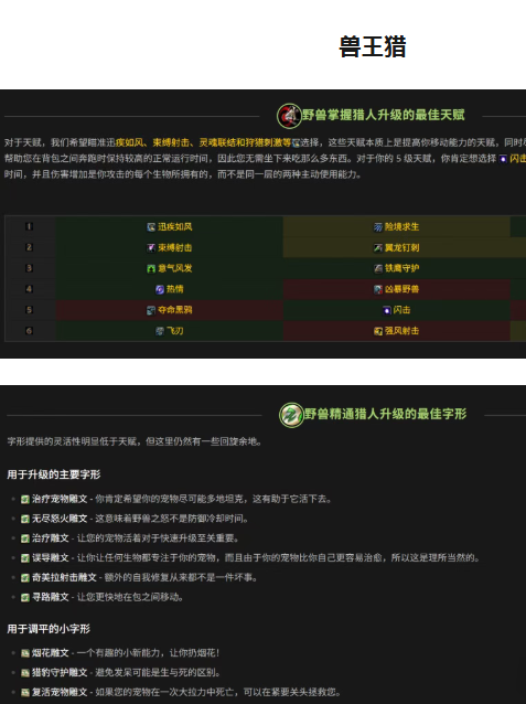 这篇文章带来猎人三系练级天赋 & 雕文推荐!(来源Wowhead)