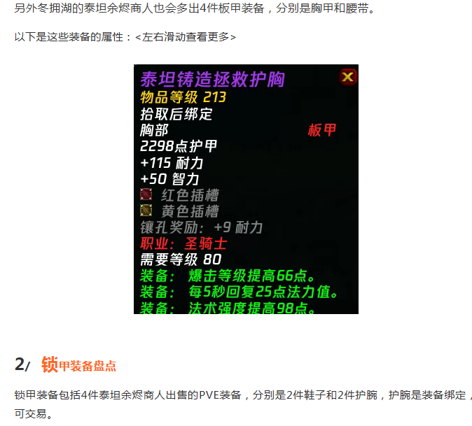 板甲装备包括6件泰坦余烬商人出售的PVE装备,分别是3件鞋子和3件护腕,护腕是装备绑定,可交易。