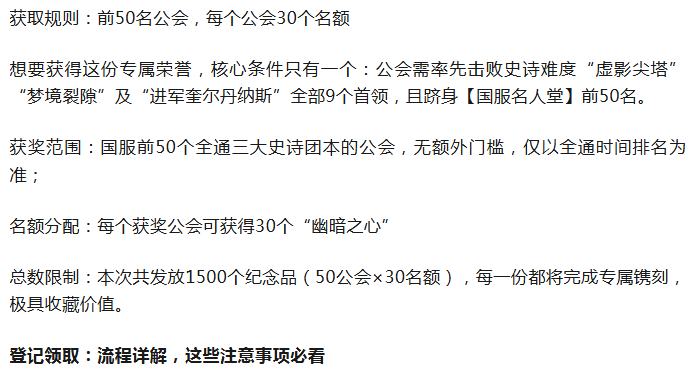 魔兽:打团本可得刻有角色ID的幽暗之心!名人堂公会每个公会有30个名额!