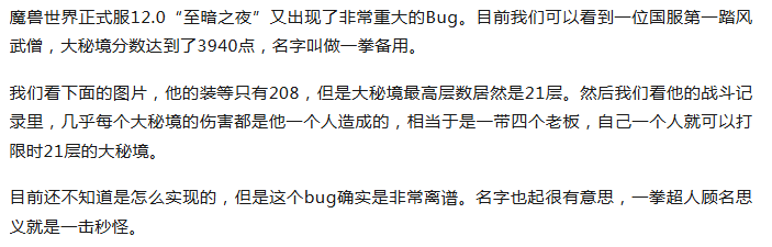 魔兽世界突发重大BUG!环保武僧单刷21层大秘境