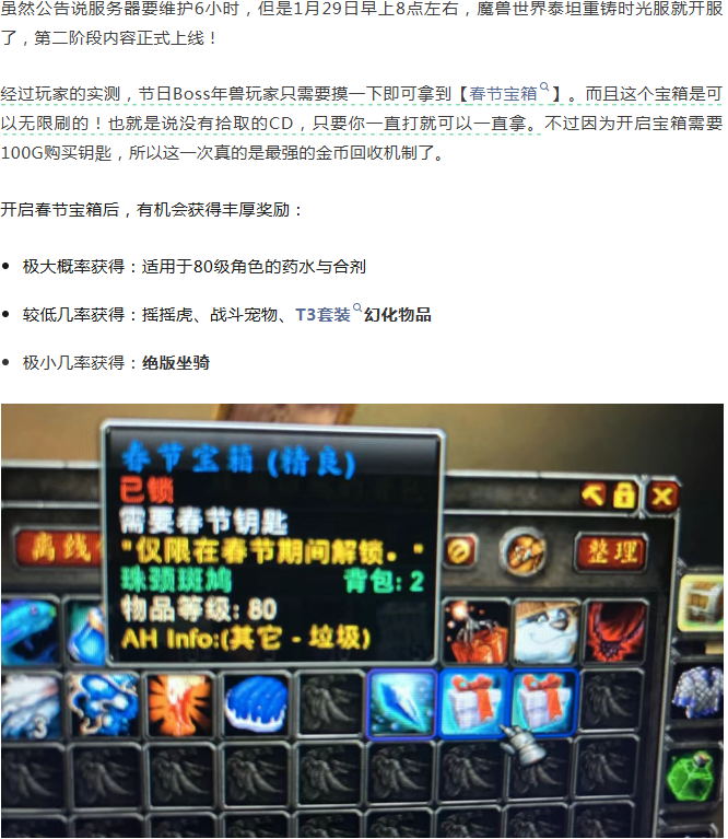 时光服提前开服!春节宝箱T3套装可无限刷!
