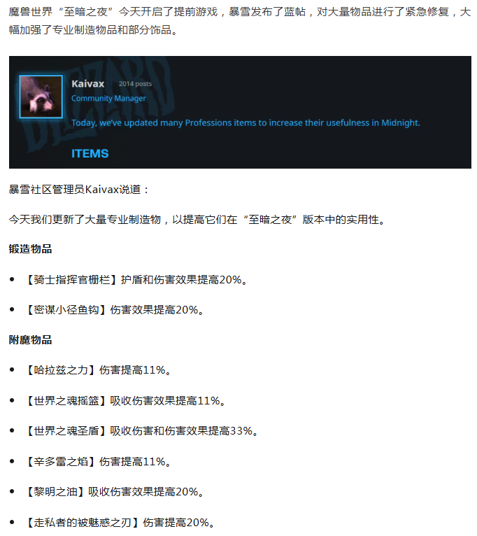 魔兽世界:暴雪紧急大幅加强专业制造物和部分饰品