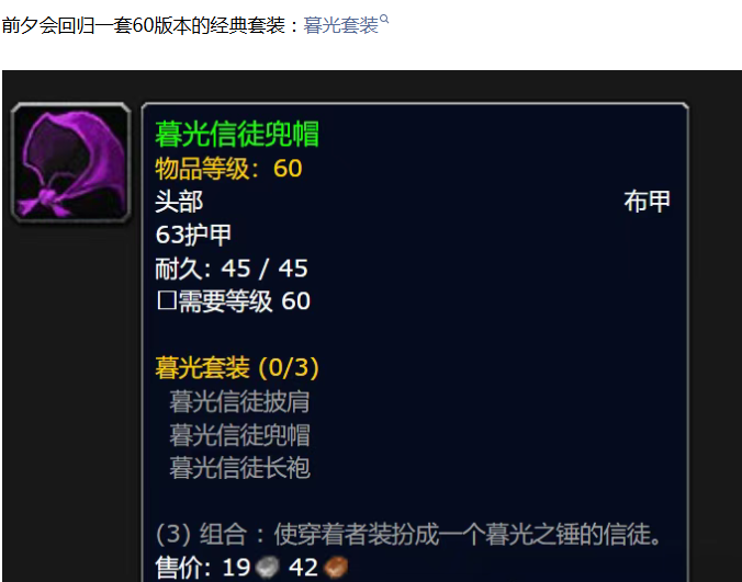 【魔兽世界】20年前绝版的套装可以重新获取了,前夕一定要收集的道具