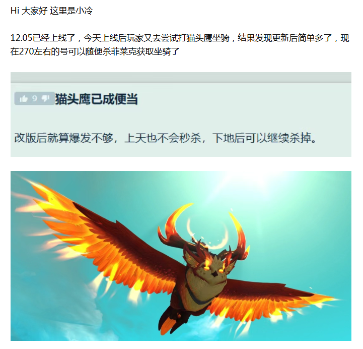 【魔兽世界】12.05最良心的改动!猫头鹰坐骑白给了,现在人人都可轻松获取