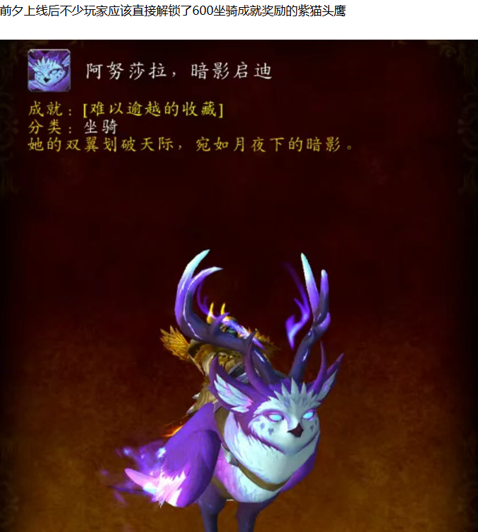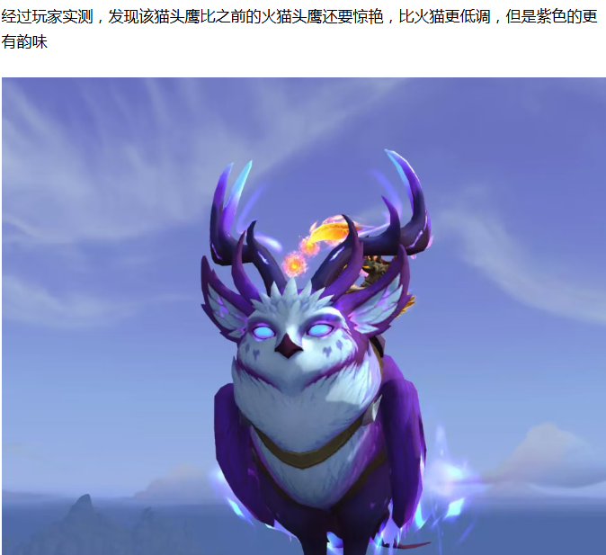 【魔兽世界】玩家上线就白嫖紫猫头鹰坐骑,实测后发现比火猫头鹰更好看