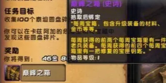 魔兽世界11.0档案馆提供了一个周常任务,很多的玩家都非常好奇这个周常要怎么做,玩家需要收集100个泰坦圆盘碎片,可以通过稀有精英,宝箱和地下城等方式获得,详细的内容可以在这里进行了解,一起来看看吧。