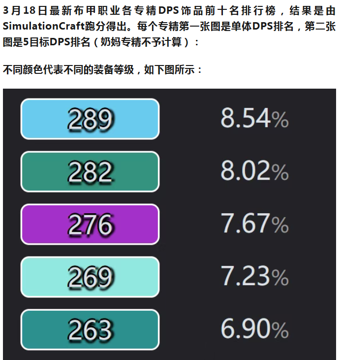 3月18日全职业专精DPS饰品Top10排行榜-布甲篇
