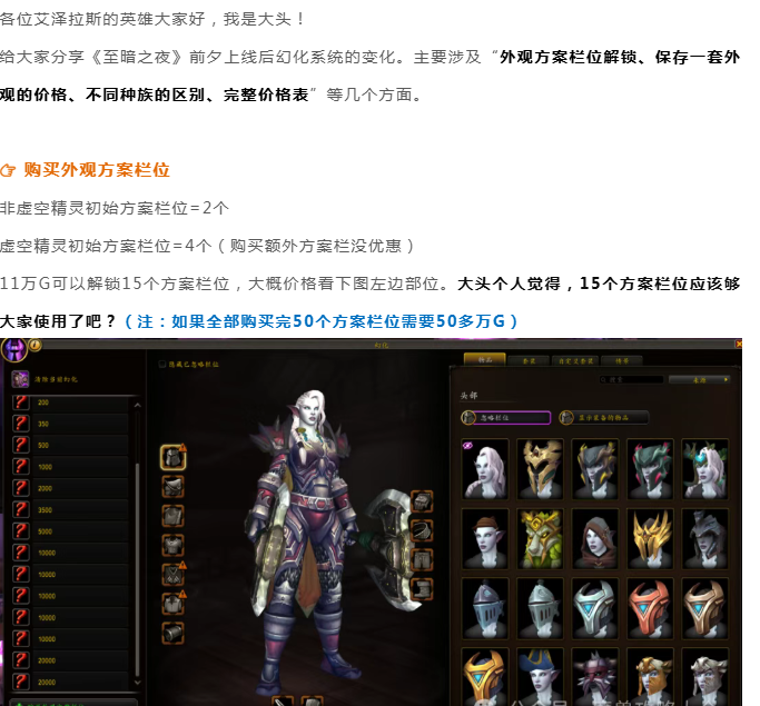 魔兽世界:“至暗之夜”幻化系统更新,虚空精灵特权(半价+多栏位),完整价格表出炉