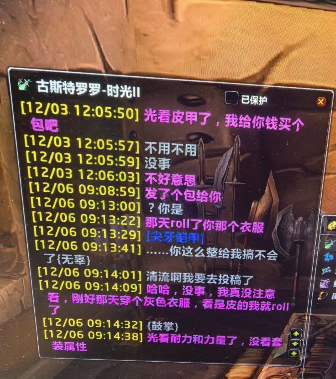 魔兽时光服清流:盗贼没注意R了个德套装,追着我弥补