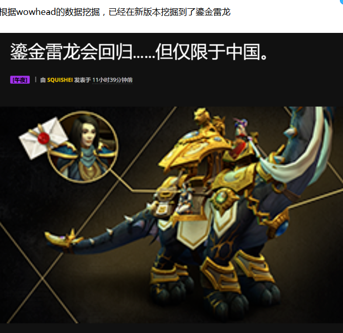 【魔兽世界】鎏金雷龙回归,但是仅限国服服务器,外服玩家羡慕坏了