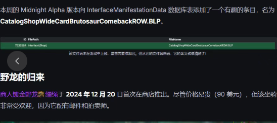 数据挖掘:鎏金雷龙 将要返场售卖 12.0测试服