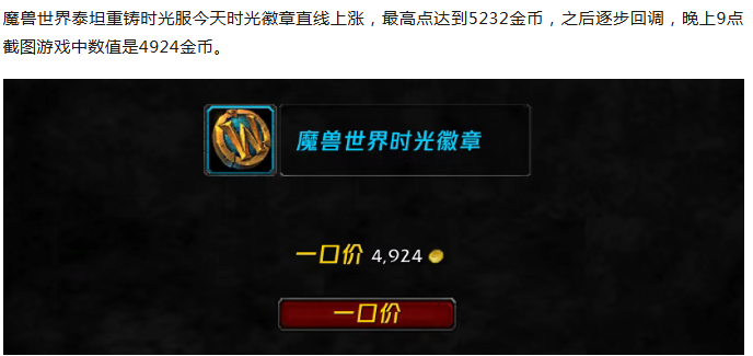 魔兽时光服:时光徽章暴涨