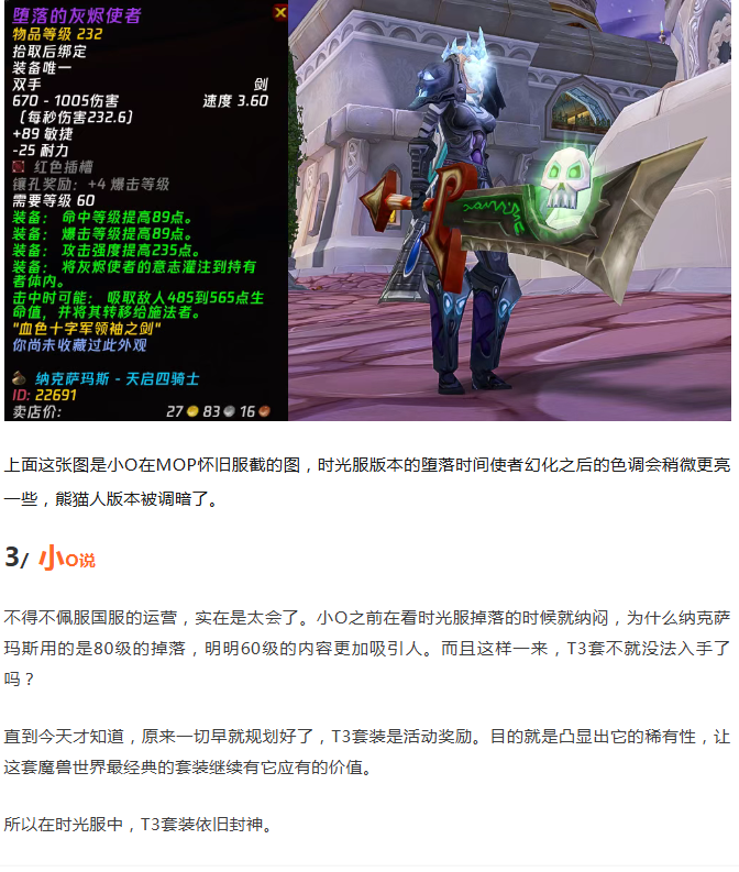 魔兽时光服重大惊喜:灰烬使者已加入游戏!T3套装依旧封神