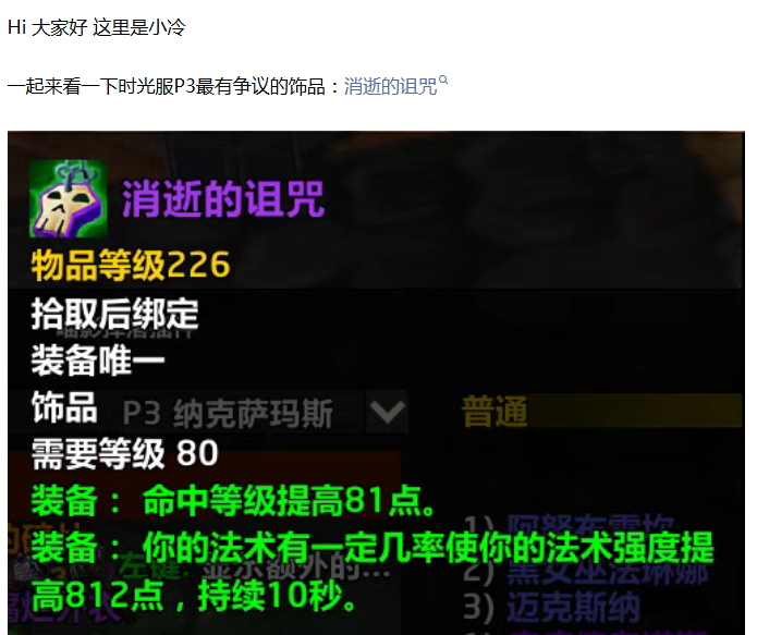 【魔兽世界】时光服P3最强饰品诅咒竟是陷阱!玩家实测模拟伤害不如短暂