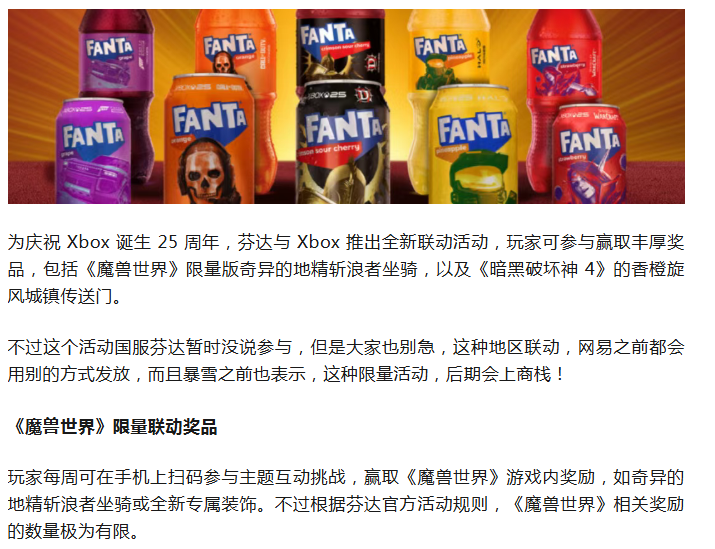 魔兽x芬达!汽水联动!奖励限量斩浪坐骑!
