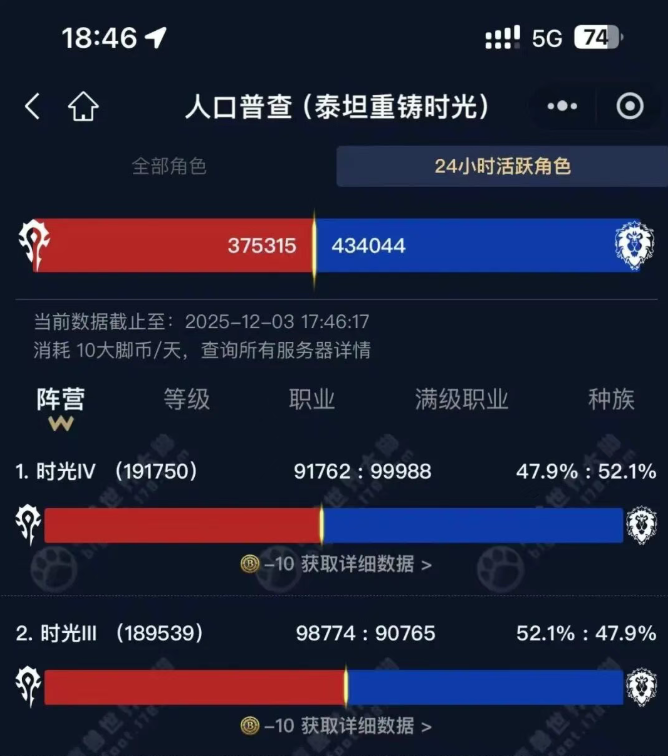 根据大脚的官方统计来看,新服的人数非常少,时光2、3、4的人数差不多