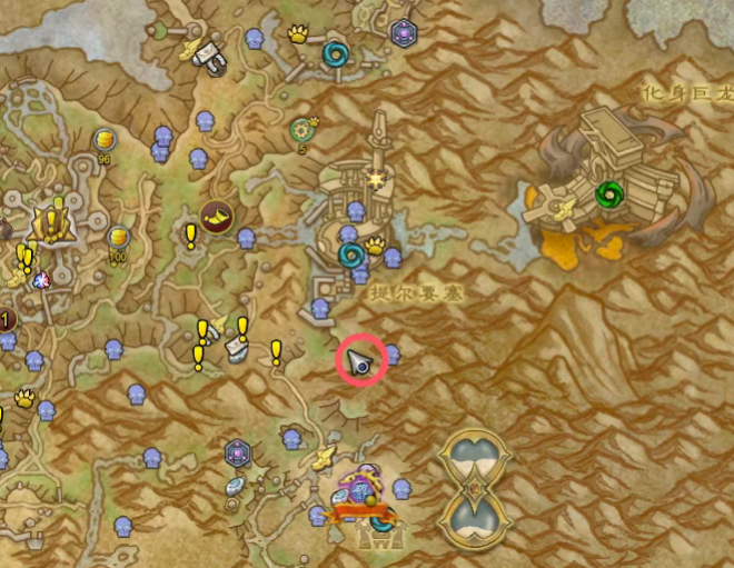 我们来到巨龙群岛的索德拉苏斯,59.69位置可以看到一个山洞,里面有一个稀有:天选者扎吉尔。