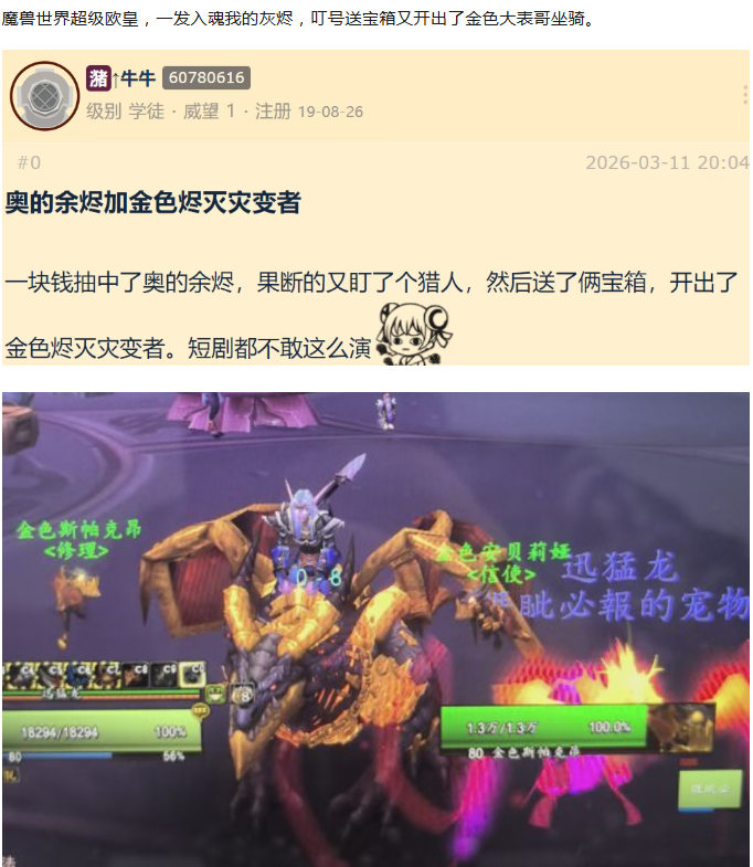 魔兽时光服超级欧皇,短剧都不敢这么演
