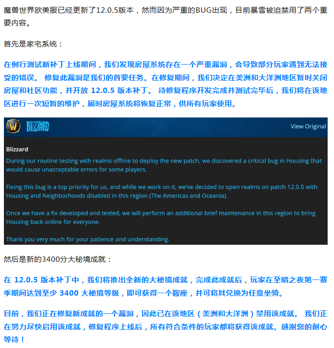 魔兽世界:新版本出现严重BUG,两个重要系统被禁用