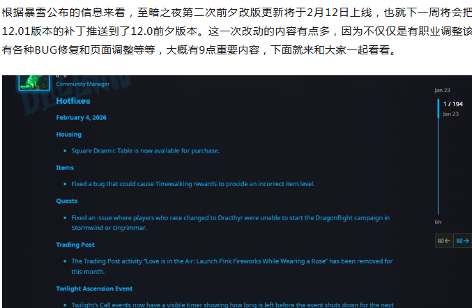 魔兽世界:首个12.01补丁公布,暴雪连续发布了9条重要改动