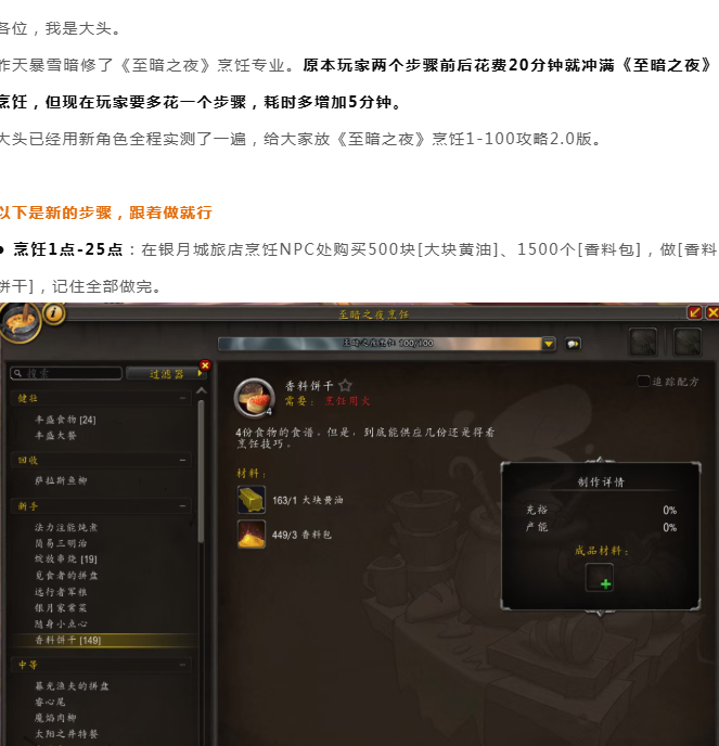 魔兽世界:大头实测2.0!就算《至暗之夜》烹饪暗改,25分钟照样练满100点