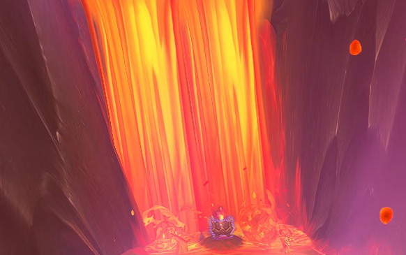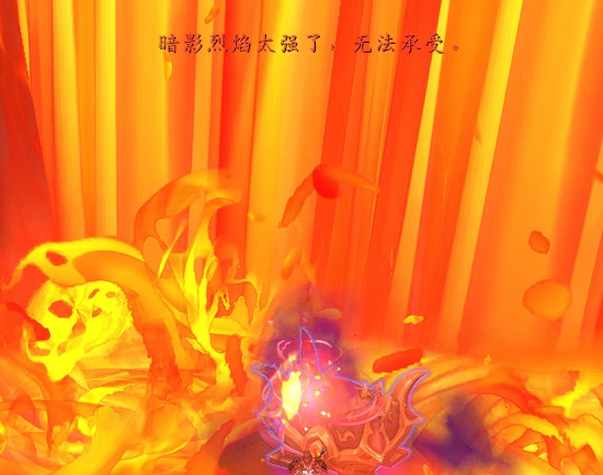 在这里,我们可以看到岩浆瀑布箱子有个箱子,如果这时候直接去跟他互动,会提示:暗影烈焰太强了,无法承受。