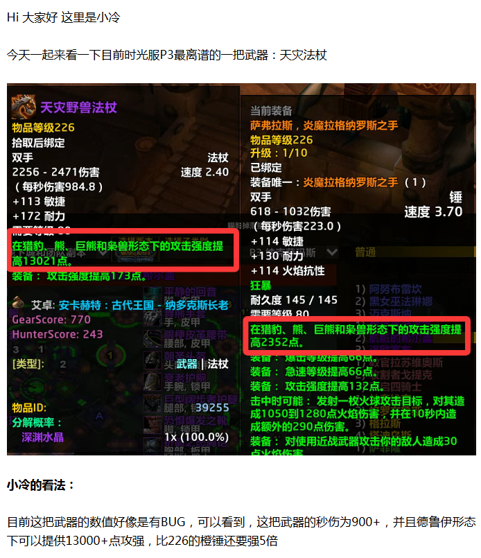 【魔兽世界】时光服P3最离谱的武器!比橙锤还要强5倍,数值太逆天了