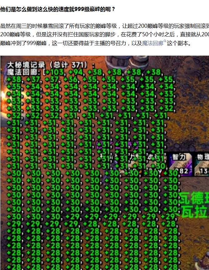根据主播透露,他们每天只睡2~3个小时,利用主播的影响力无限刷魔法回廊这个副本,通常上一个副本还在刷的时候就已经安排好了下一个进组的水友,然后分配好每个人去打对应的BOSS,其中最快的一把魔法回廊他们只打了1分39秒。