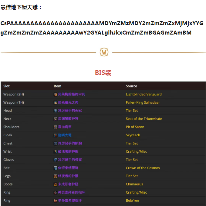 12.2.0冰DK全解析丨天赋、BIS装、附魔、属性优先级、输出循环!